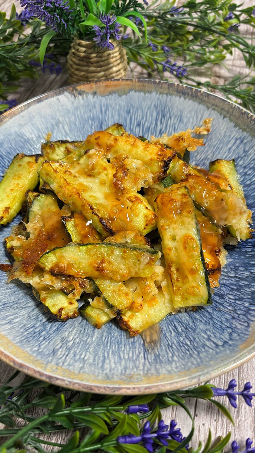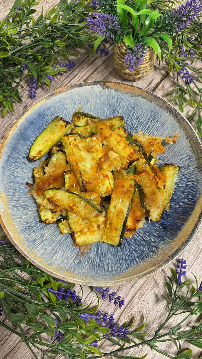 - 2Pulverizamos aceite y hacemos una mezcla con el queso y el sazonador de verduras.