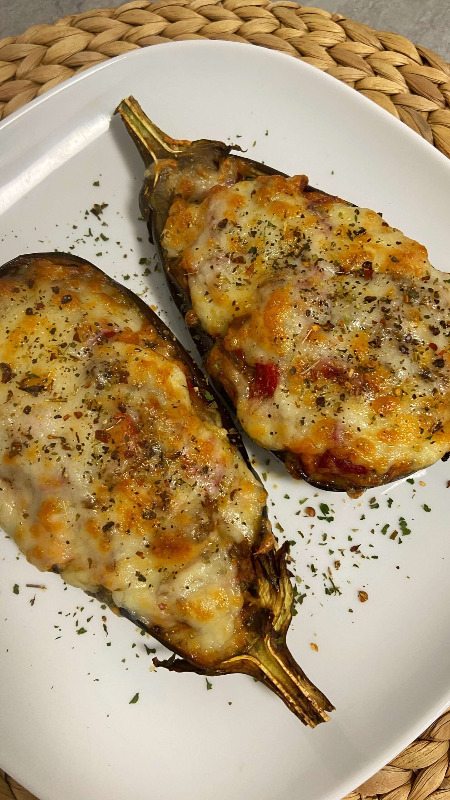 - 5Rellena las berenjenas con la mezcla y pon sobre ellas una cantidad generosa de mozzarella y calienta 5m a 200° para derretir el queso.