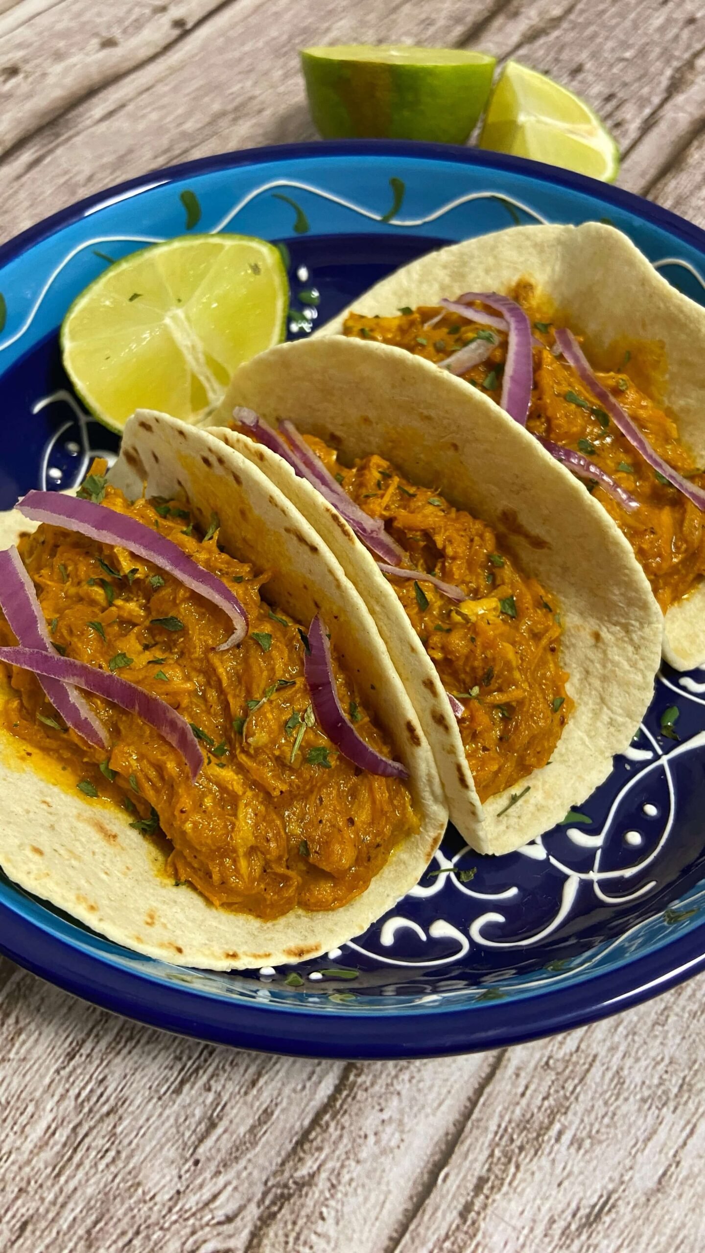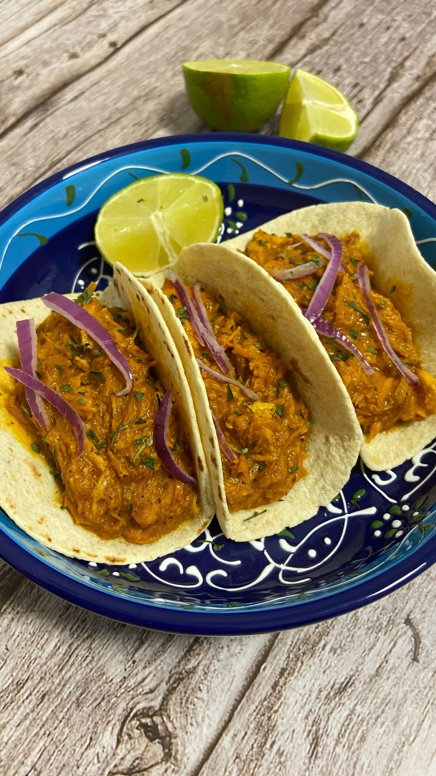 - 3Pon la cochinita sobre los tacos, corta cebolla y sirve con lima.