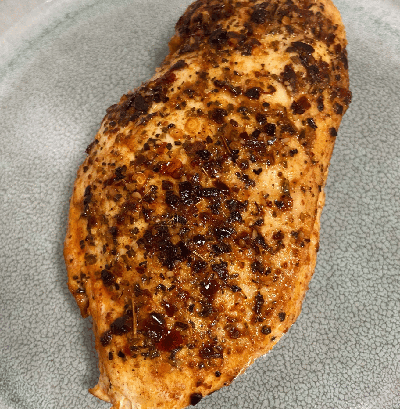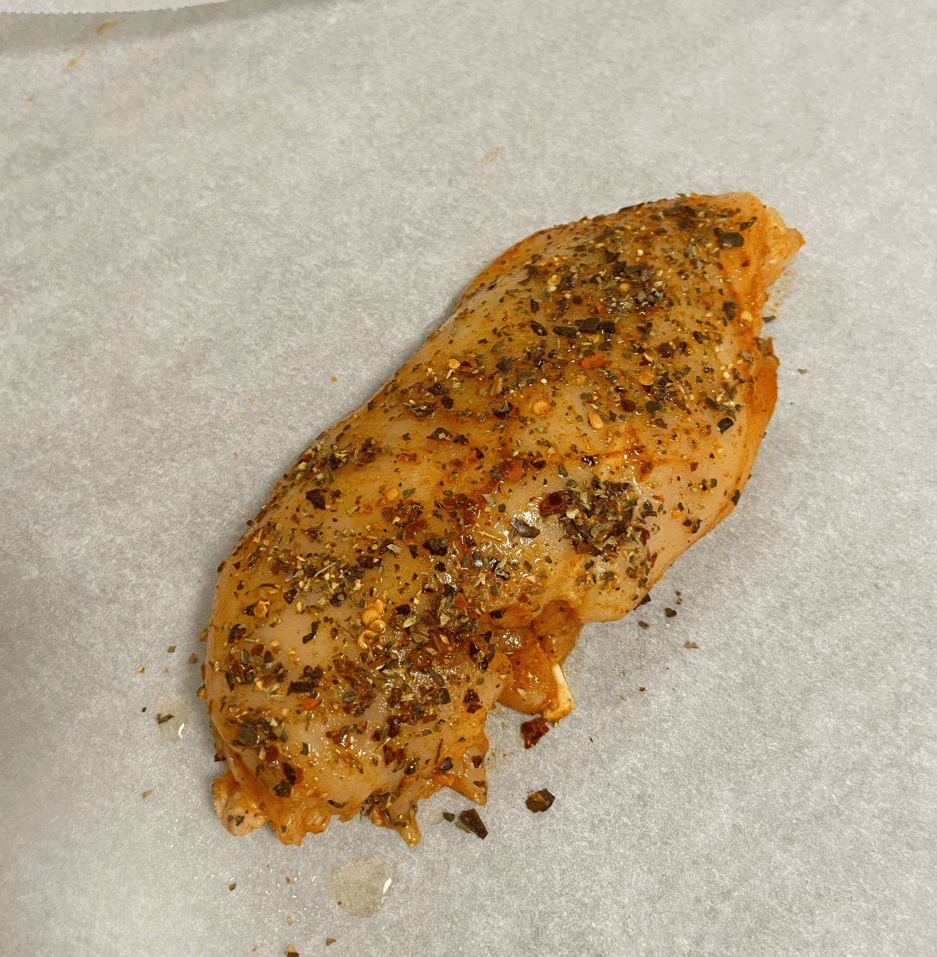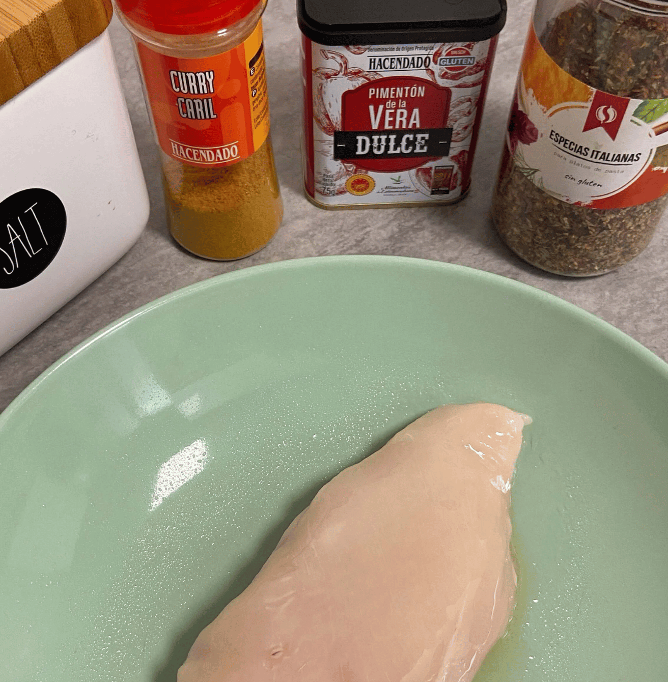 Pulveriza AOVE sobre la pechuga de pollo.