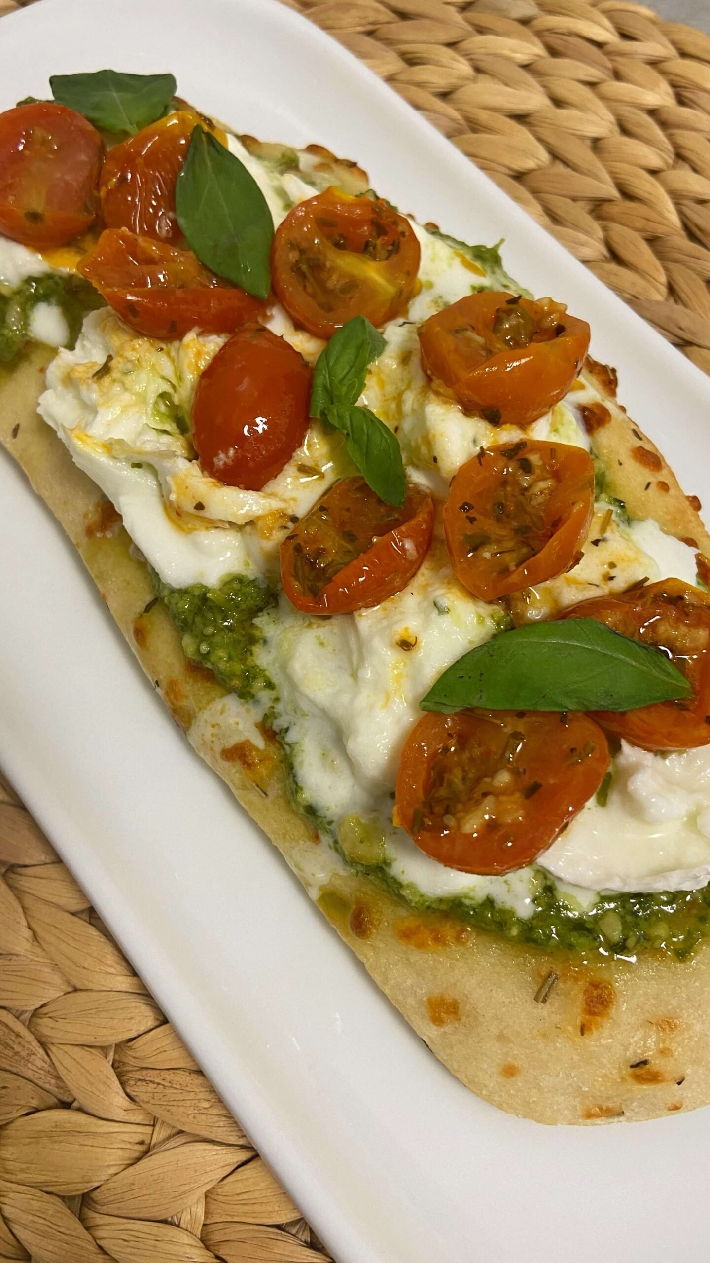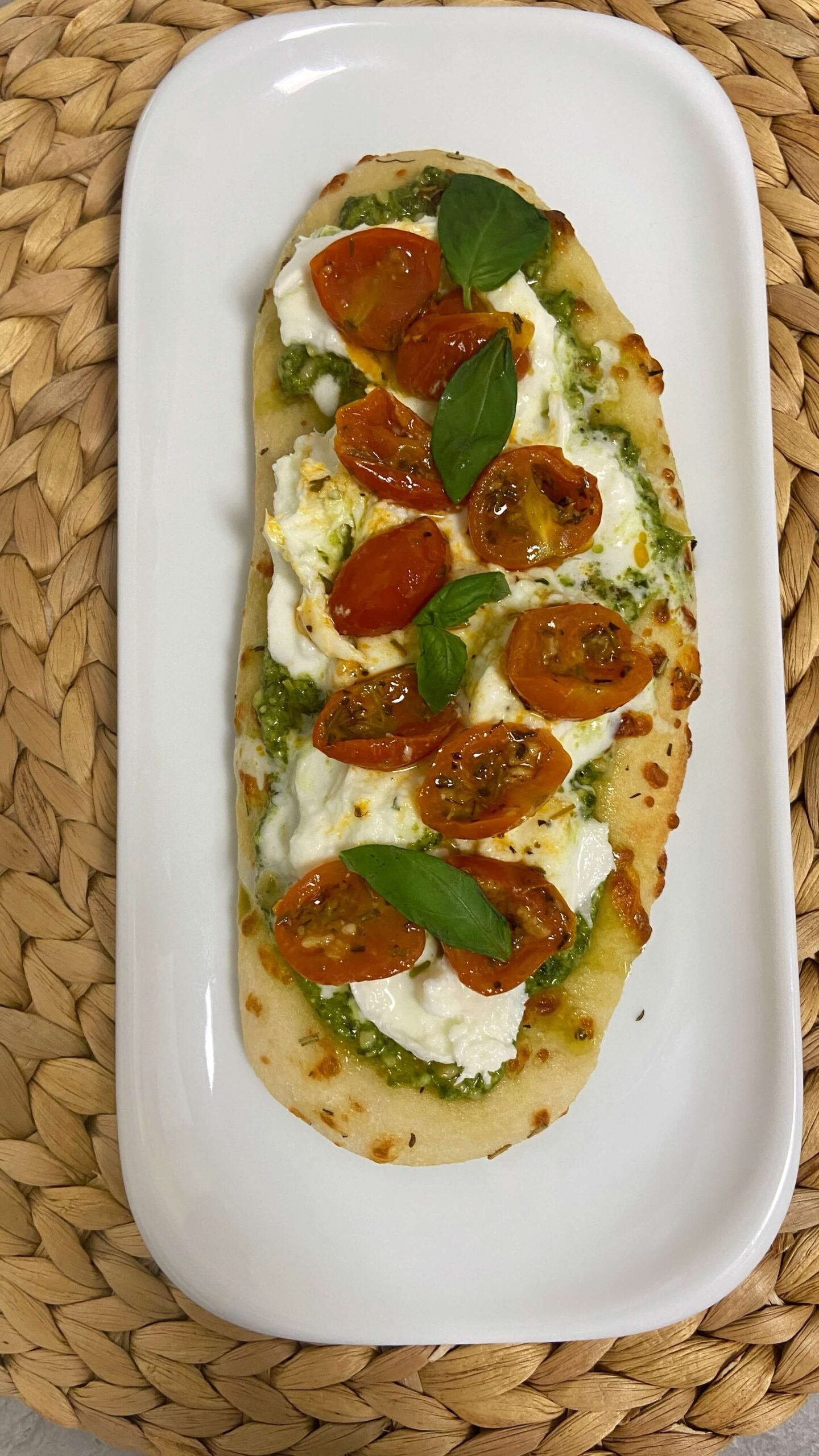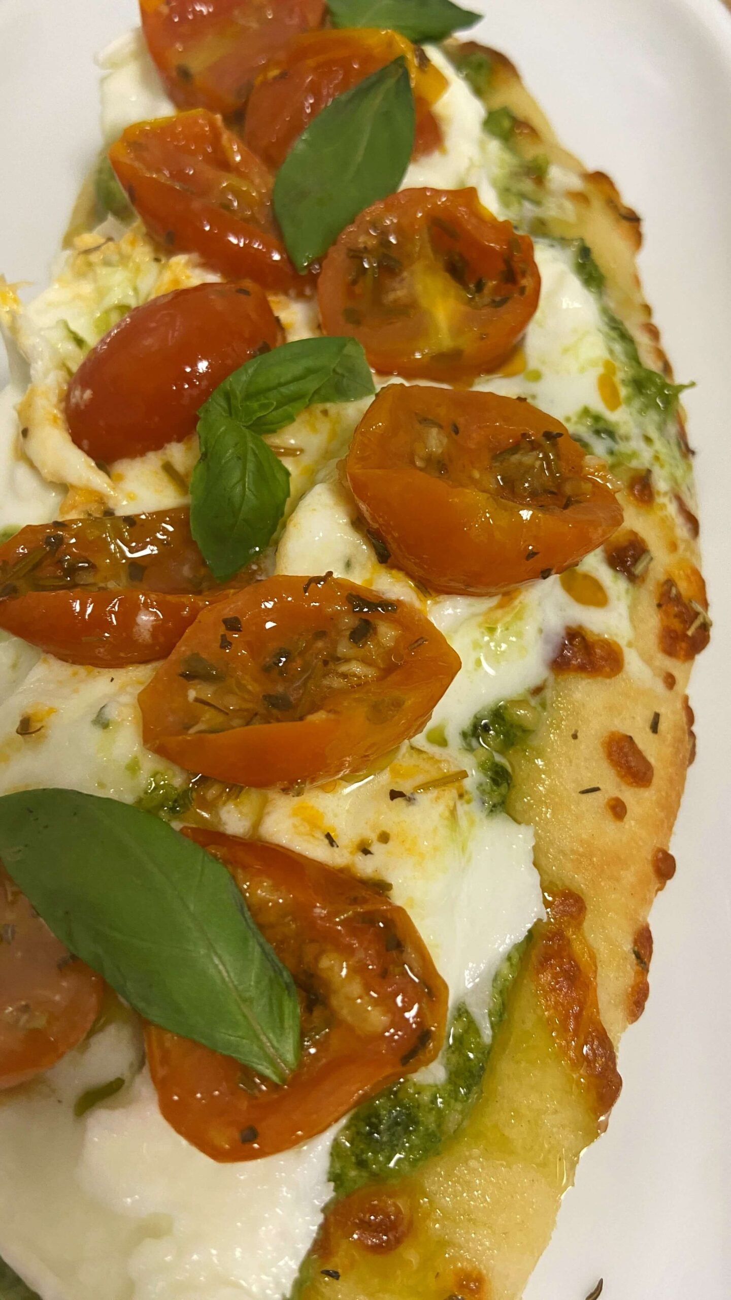 - 4Corona con los tomatitos al gusto y dale sabor con las hojas de albahaca.