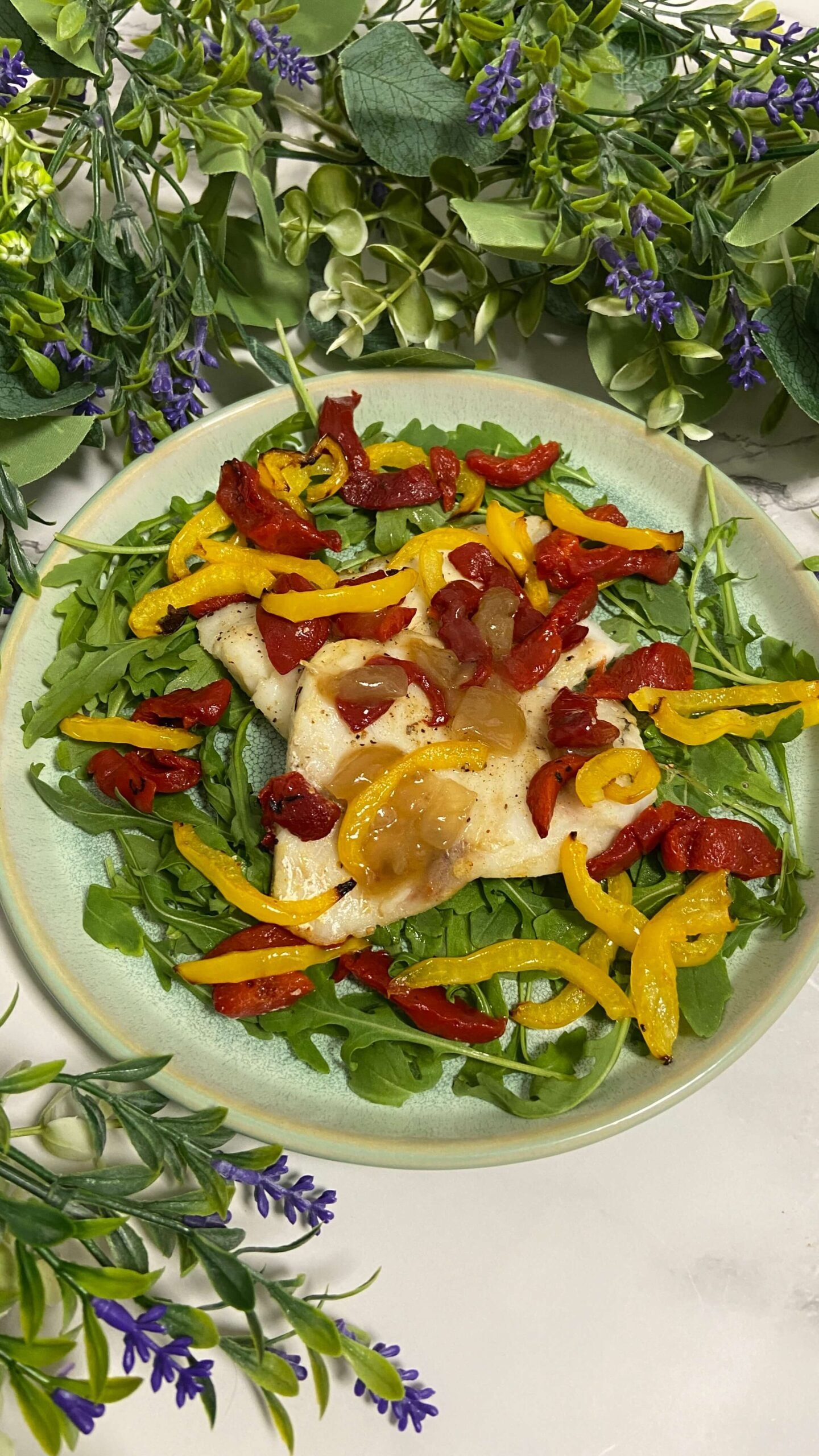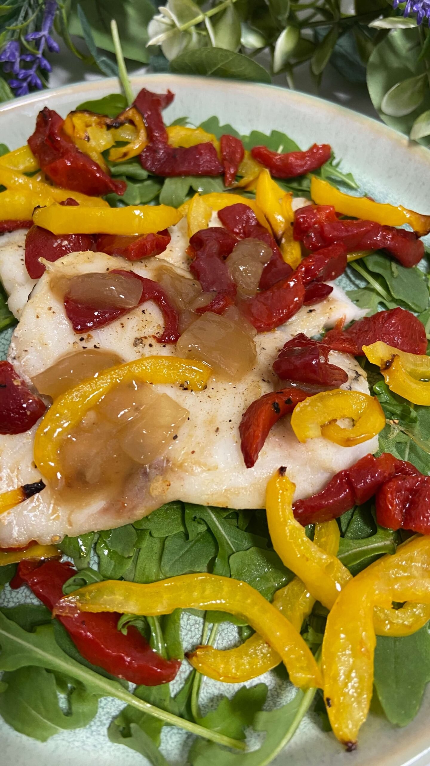 - 1Corta el pimiento en tiras y cocina durante 8m a 190°.