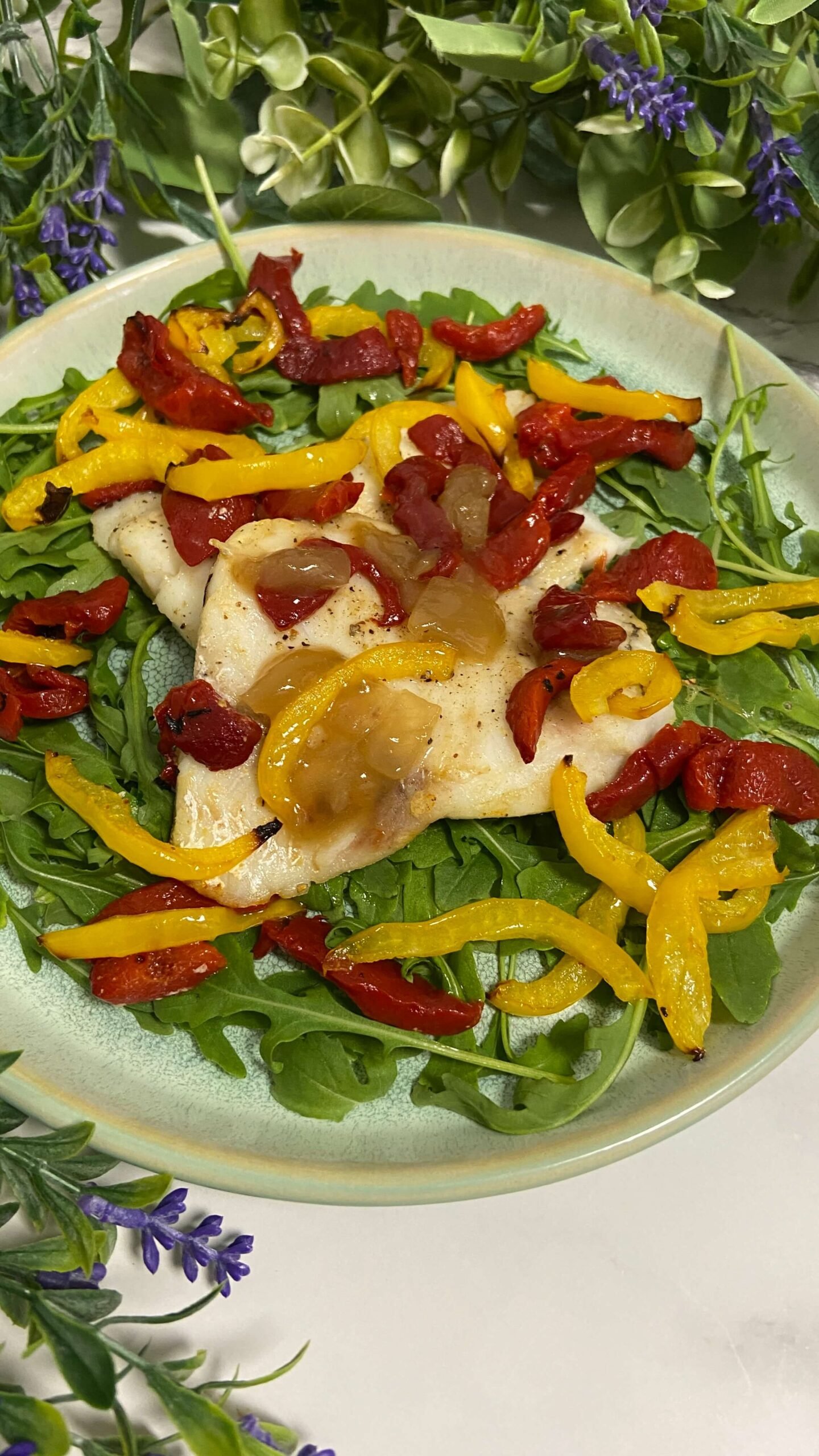 - 2Introduce los filetes de merluza y cocina durante durante 10m a 190°.