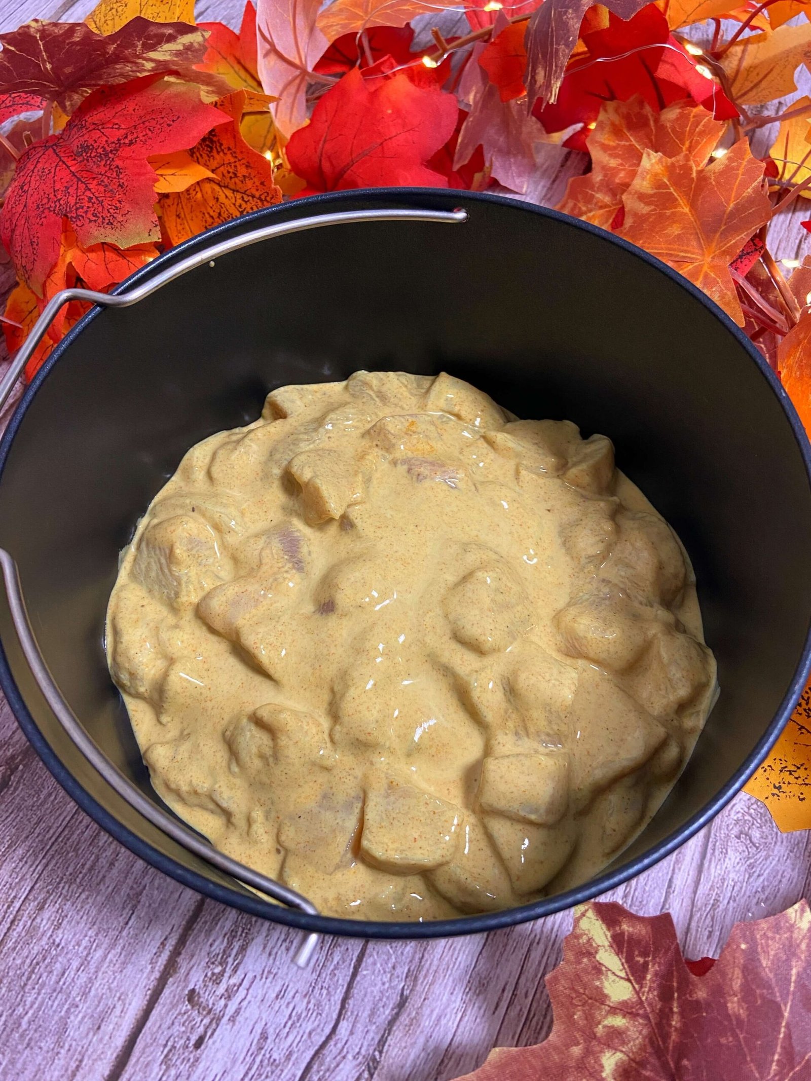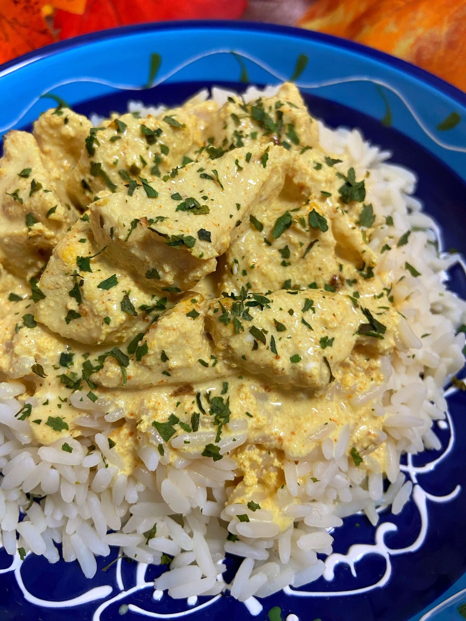 - 1El día de antes, corta la pechuga en cuadrados y mézclala con el yogur y el curry (cantidad al gusto).