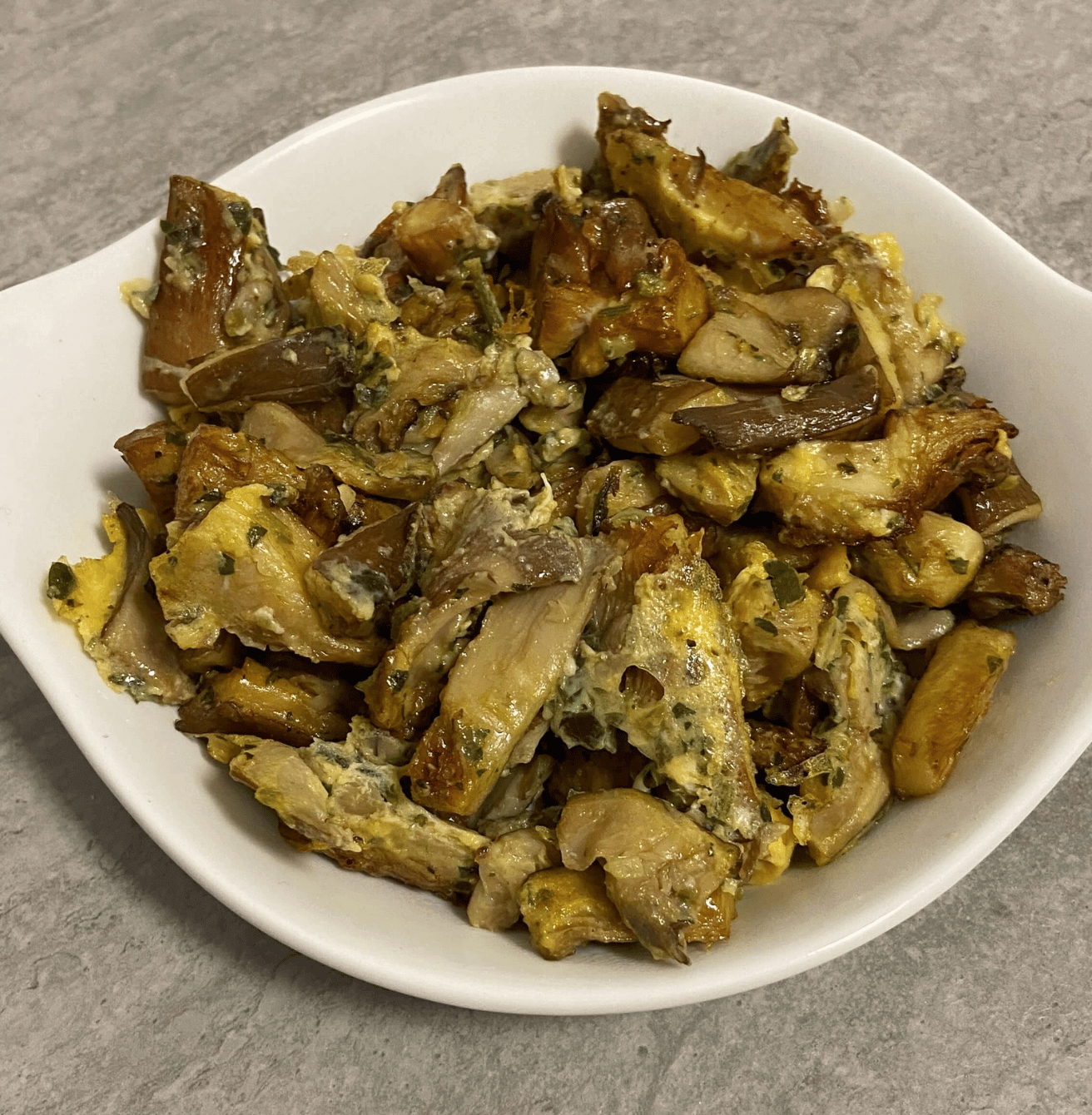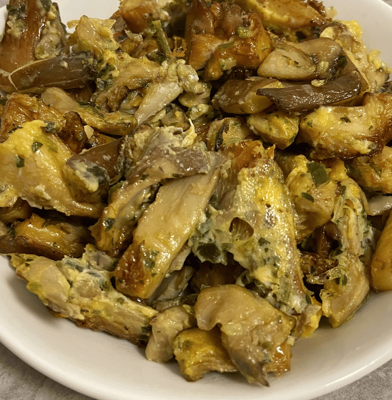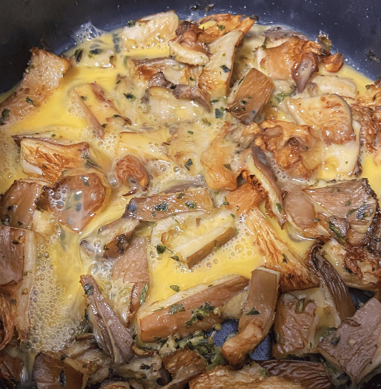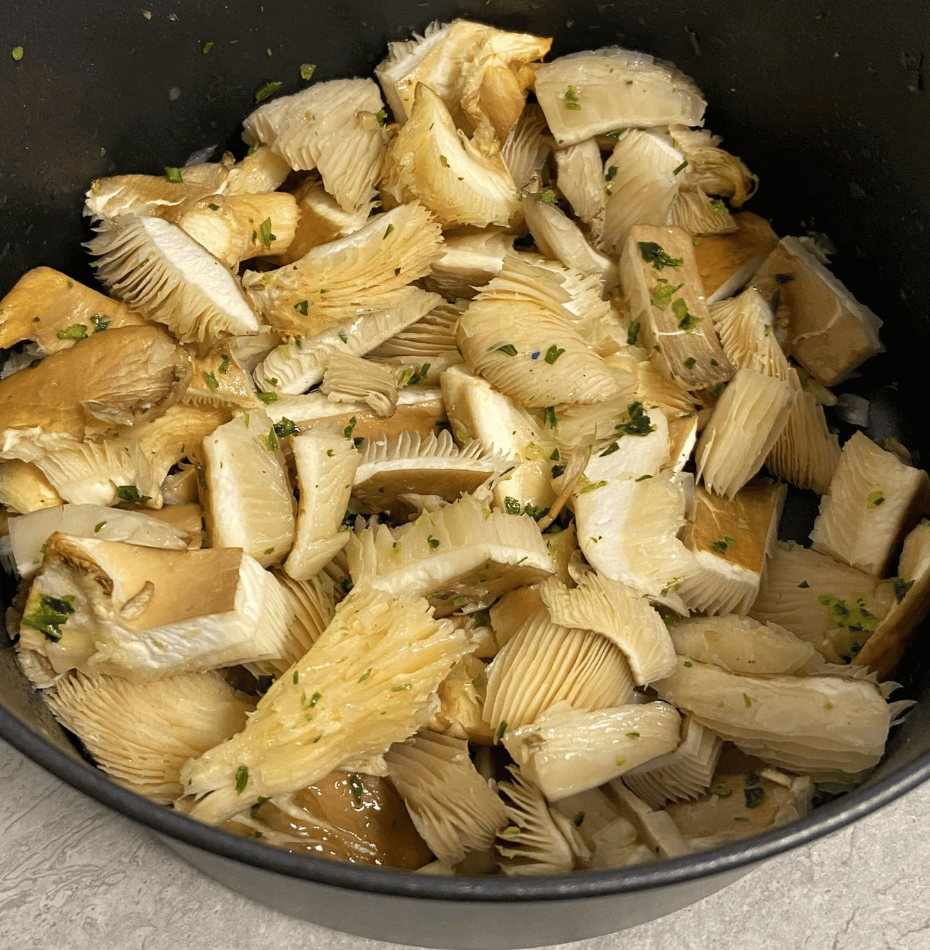 - 3Echa las setas y cocina .durante 15m a 180° removiéndolas de vez en cuando.